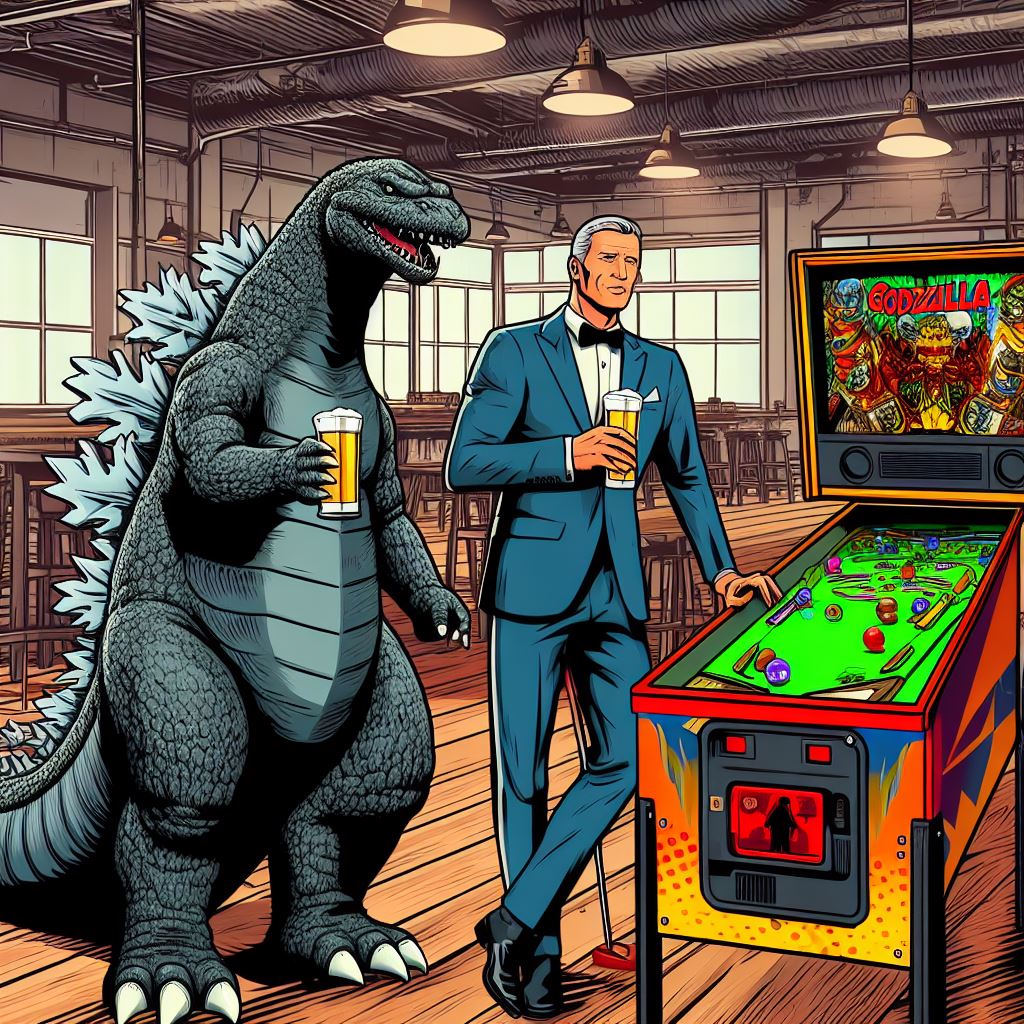 Games: Led Zeppelin (Prem), Godzilla (Prem), Jurassic Park (Pro), Cirqus Voltaire, Star Wars (Data East), Dracula (Stern), and TWO holes on James Bond 60th Anniversary